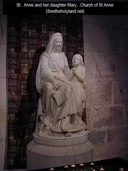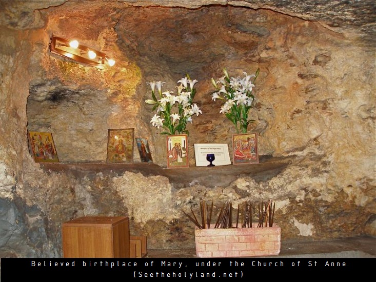 رغم أن الأناجيل لا تذكر لنا مكان ميلاد العذراء، إنما بحسب تقليد قديم يعود الى حوالي العام 150 ميلادي فإن منزل العذراء الوالدي يقع في مكان في القدس غير بعيد عن الهيكل.