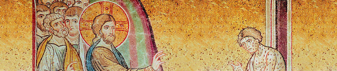 "فجاء إليه رجل أبرص": البرص، أكثر من الأمراض الأخرى كلّها، كان المرض الأكثر خطورة بالنّسبة لكل المجتمعات القديمة. وكان ناموس العهد القديم يفصِل الأبرص عن المجتمع جسديًّا وروحيًّا، فلا يُمكنه أن يسكن في المدينة ولا يحقّ له المشاركة في صلاة الجماعة.